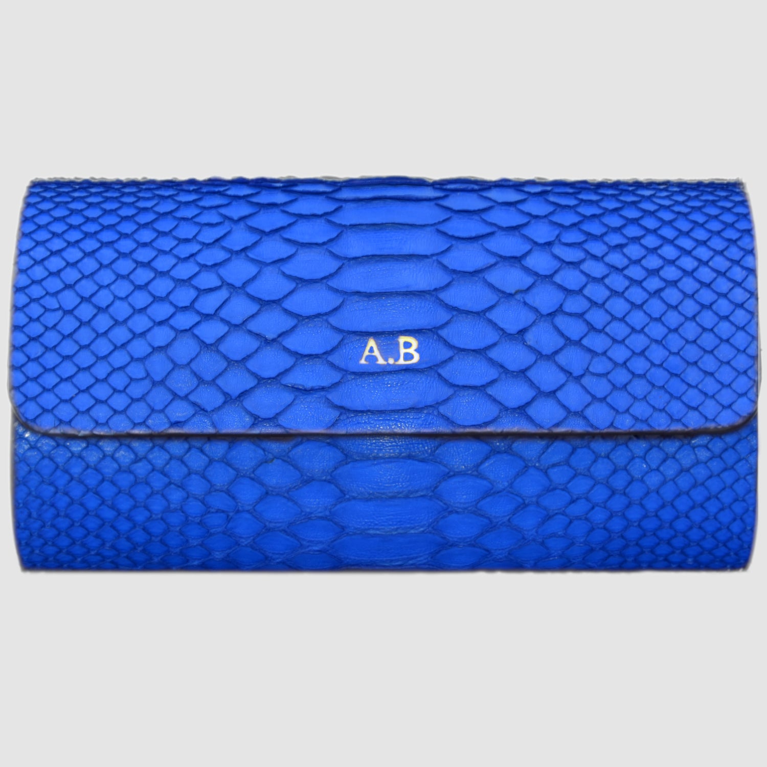 Watch Roll in genuine Python skin personalized for 2 Watches- Cobalt Blue